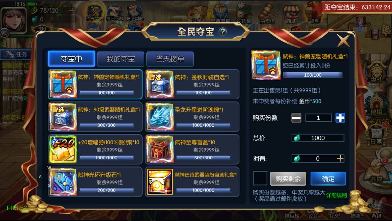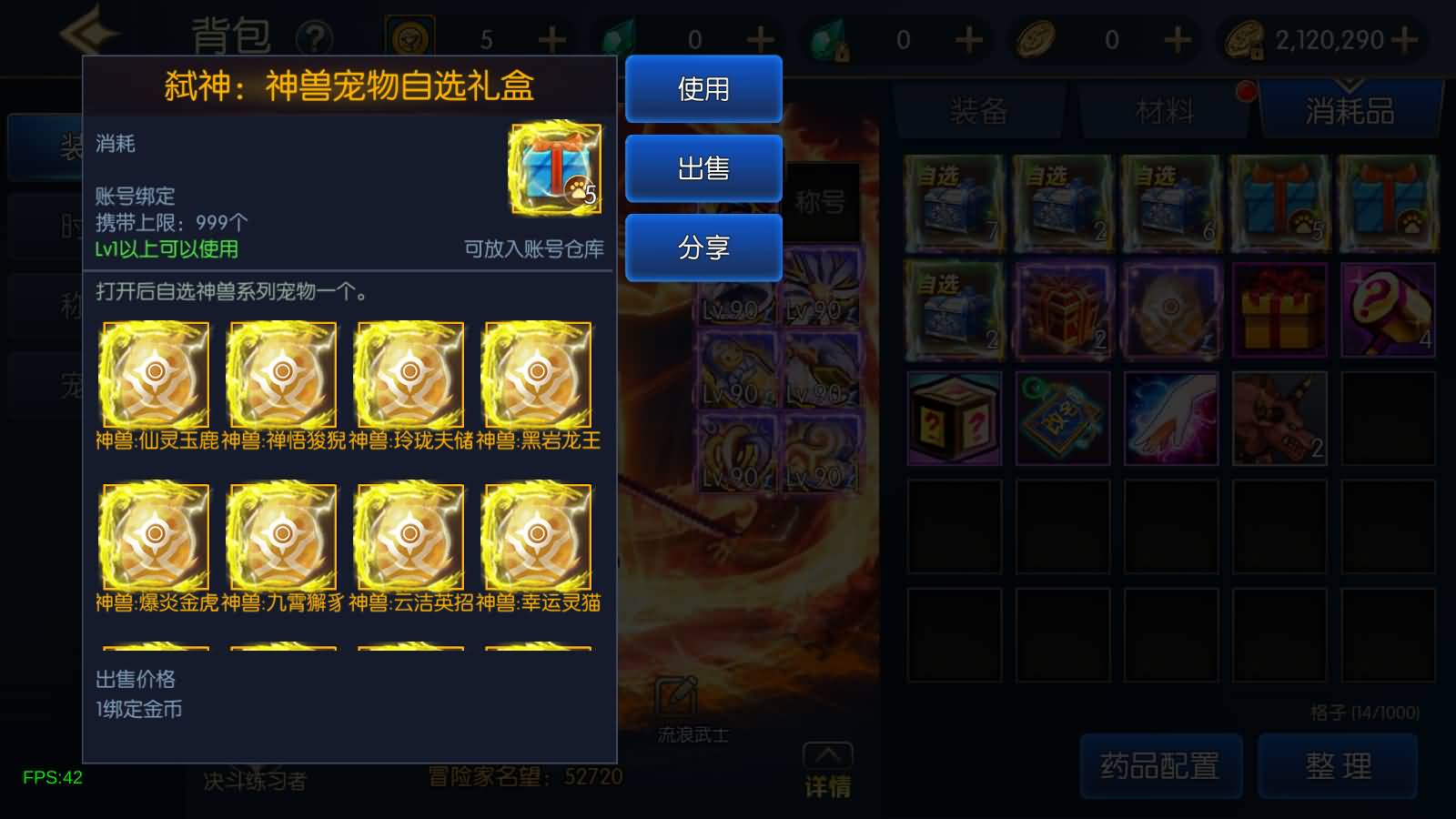 5.剑魂大拔刀,神兽宠物14个+自选、随机礼盒