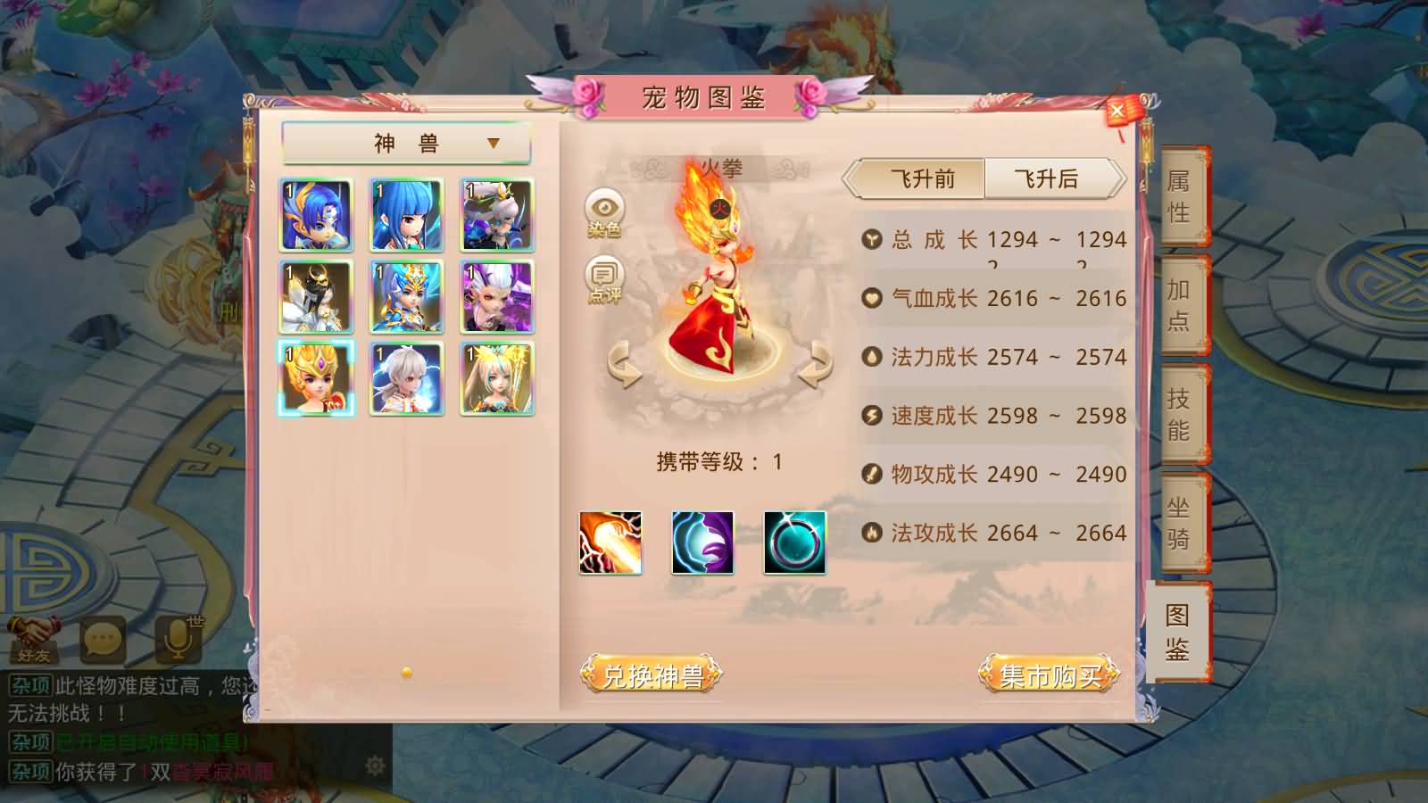 1,大荒翅膀和铭牌分别加4万金元宝进阶为终极翅膀和终极铭牌,属性和上次更新的究级时装属性一致。